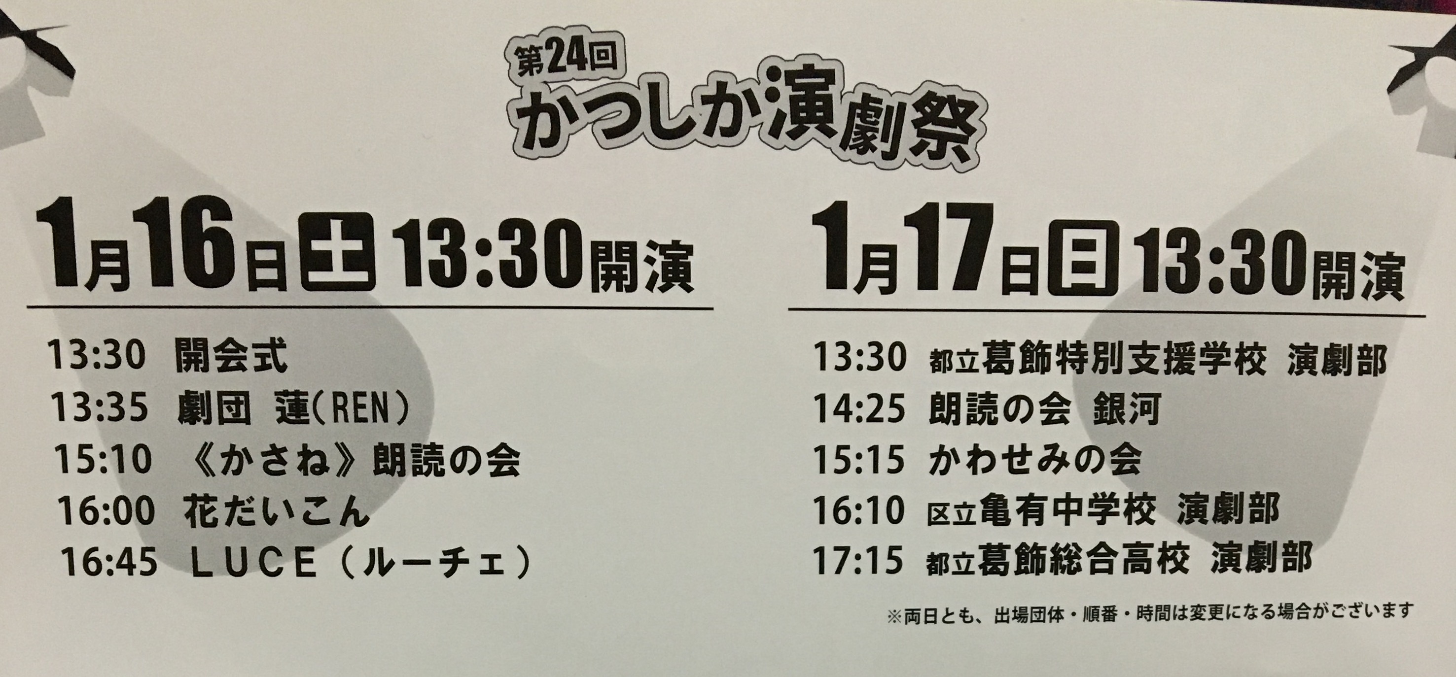 1月16日 かつしか演劇祭に参加します。